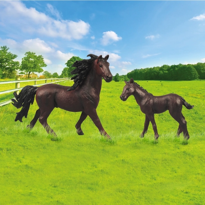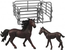 Îmbogățiți-vă colecția de jucării cu acest frumos set de cai cu țarc. Figurina calului și a mânzului arată realist și prin detalii încântă toate categoriile de vârstă. Pachetul conține: