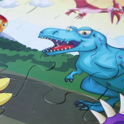 Datorită pieselor mai mari, acest puzzle este ideal și pentru cele mai mici mânuțe. Tema dinozaurilor va aduce multă distracție și aventură în camera copiilor.