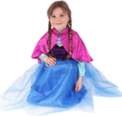 Transformă-ți micuța cochetă într-o prințesă curajoasă din îndrăgitul regat al iernii. Costumul se remarcă prin calitatea execuției, culorile puternice și croiala confortabilă, care permite libertate de mișcare la joacă și dans. Pelerina elegantă roz, cu „cristal” decorativ, oferă rochiei un aspect festiv.