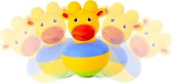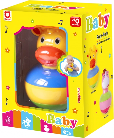 Girafa drăgălașă care nu se răstoarnă se leagănă continuu datorită bazei rotunjite, iar în interior clinchetează ușor un clopoțel. O jucărie grozavă pentru cei mai mici, pentru dezvoltarea motricității și a simțurilor. Culorile pot varia.