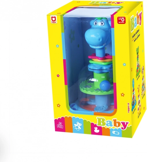 O jucărie multicoloră în formă de dinozaur, care la apăsarea capului pune în mișcare biluțele colorate – acestea se rotesc, sar și produc un sunet de zornăit. Distracție grozavă pentru cei mai mici copii.