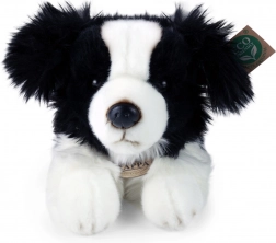 Câine de pluș Border Collie de 30 cm este fabricat manual din pluș de înaltă calitate pentru un aspect realist. Cadou ideal pentru iubitorii de jucării moi, cu umplutură ecologică.