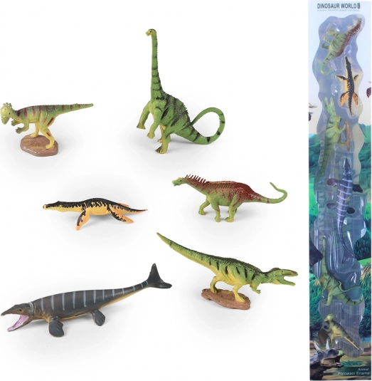Descoperă lumea preistorică cu setul de șase dinozauri redați în detaliu. Figurinele sunt realizate din cauciuc dur de calitate și, datorită dimensiunii compacte de aprox. 6–10 cm, sunt ideale pentru joacă acasă sau în călătorii. Cutia practică facilitează depozitarea și transportul.