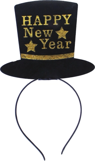 Bentiță neagră cu pălărioară, completată de inscripția aurie HAPPY New Year, este un accesoriu senzațional pentru petrecerea sau sărbătoarea de întâmpinare a Anului Nou!