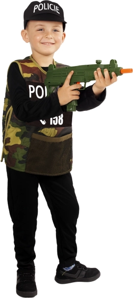 Acest costum de polițist realist va face senzație la carnaval, la balul mascat și în jocurile de rol de acasă. Salopeta neagră ușoară, vesta camuflaj cu inscripția POLIȚIE bine vizibilă și șapca oferă un aspect autentic și confort pe tot parcursul zilei.