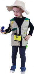 Acest costum de carnaval transformă orice copil într-un explorator curajos. Vesta ușoară cu buzunare și pălăria fără șnur se îmbracă ușor, în timp ce accesoriile bogate stimulează imaginația și dezvoltă curiozitatea la joacă, atât acasă, cât și afară.