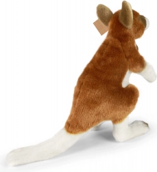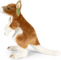 Umplutura eco‑friendly din sticle PET reciclate garantează grijă pentru mediul înconjurător, păstrând în același timp moliciunea și confortul la un nivel de top. Cangurul stă în poziție verticală, are coadă și urechi tipice, ceea ce îi subliniază fidelitatea aspectului.