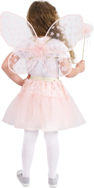 Aripi mari și delicate cu motiv floral completează perfect aspectul de zână.