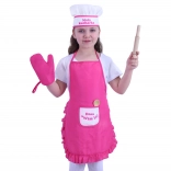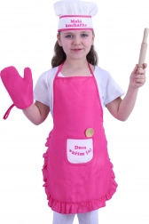 Costumul ideal pentru fiecare mică bucătăreasă! Acest costum roz include un șorț, o bonetă de bucătar, o mănușă și ustensile din lemn – tot ce are nevoie pentru a se juca cu plăcere.