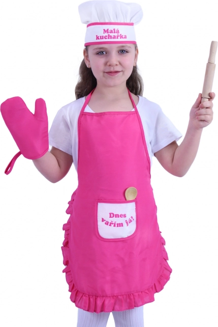 - Șorț roz cu inscripția cehă "Astăzi gătesc eu!" pentru o experiență autentică.