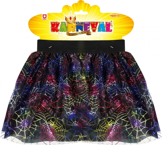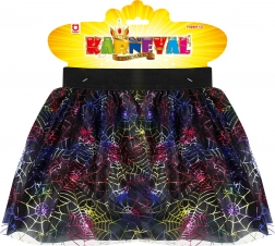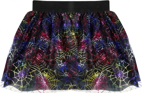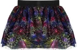 Transformă costumul într-o clipă – fusta inferioară neagră, cu un strat de tiul ușor imprimat cu pânze de păianjen colorate, adaugă fiecărei ținute o notă magică. Materialul este aerisit, plăcut la purtare și se ondulează frumos în mișcare.