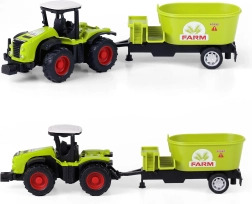 Tractorul echipat cu o remorcă detașabilă nu doar că este un adaos grozav pentru colecția copilului dar și un mijloc de dezvoltare a imaginației și înțelegerii funcționării mașinilor agricole. Lungimea totală a ansamblului este de 18 cm, asigurând o manipulare ușoară.