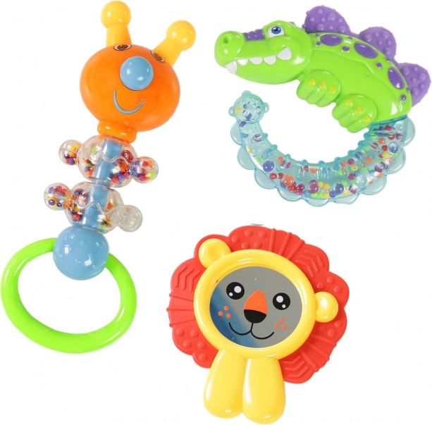 Îmbogățiți camera copiilor cu trei zornăitori frumos colorate în formă de animăluțe, precum prieteni insecte, crocodil și leu. Fiecare zornăitor este fabricat din plastic de calitate și sigur, asigurând nu doar durabilitatea, ci și o întreținere ușoară. Datorită prinderii ușoare, fiecare copil le va îndrăgi.