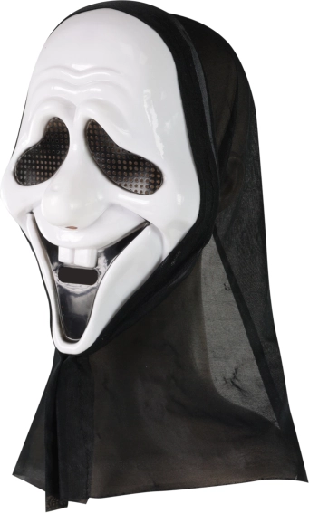 Sperie-ți prietenii cu o impresionantă mască de spirit cu eșarfă, care creează instantaneu o atmosferă amenințătoare. Datorită designului universal, se potrivește majorității costumelor și îți asigură o deghizare ușoară și rapidă.