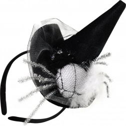 Bentița vizibilă cu mini pălăriuță și păianjen este un accesoriu senzațional pentru petreceri sau carnaval. Ideală pentru păr la sărbătoarea vrăjitoarelor sau de Halloween.