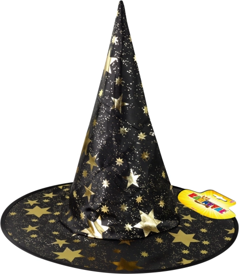 Transformă-te în câteva clipe într-o mică vrăjitoare sau într-un mic vrăjitor. Această pălărie neagră cu stele aurii este accesoriul perfect pentru costumele de Halloween, petrecerile pentru copii și carnavalurile școlare. Datorită materialului ușor, se poartă plăcut și își păstrează bine forma.