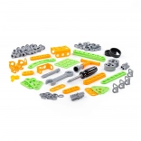 De asemenea, vă va bucura realismul jucăriei, deoarece copie fidelă a uneltelor reale pe care tata le are în atelier. În set găsiți o șurubelniță cu șuruburi și două capete interschimbabile, o cheie cu piulițe și un burghiu.