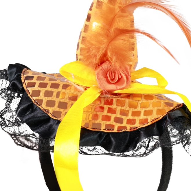 Bentiță stilată cu mini pălărie în culoare portocalie și cu dantelă neagră, o alegere perfectă pentru petreceri, carnavaluri și sărbători de 1 Mai/Noaptea Valpurgiei sau Halloween. Acest accesoriu expresiv oferă costumului tău un strop de șarm și îți evidențiază personalitatea. Ușoară, confortabilă de purtat și imediat remarcabilă.