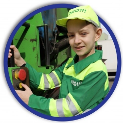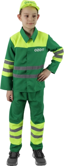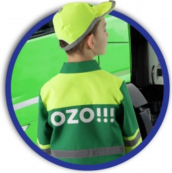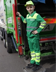 Acest costum este ideal pentru orice mic pasionat de mașini de gunoi! Se livrează într-un set care include o bluză cu inscripție, șapcă și pantaloni, toate cu elemente reflectorizante pentru o vizibilitate mai bună.