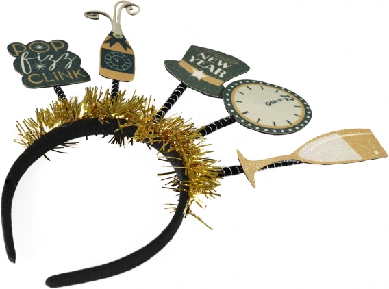 Bentița aduce un strop de umor și originalitate sărbătorilor de Anul Nou cu inscripțiile 'Pop Fizz Clink'.