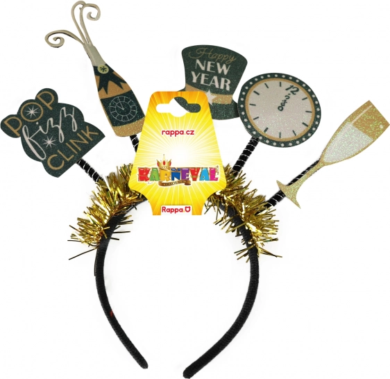 Această bentiță negru-aurie este decorațiunea perfectă pentru toate sărbătorile și petrecerile de Anul Nou. Este delicat împodobită cu elemente tipice atmosferei de Anul Nou. Bentița este destinată celor care doresc să întâmpine noul an cu stil, în mod jucăuș și elegant.