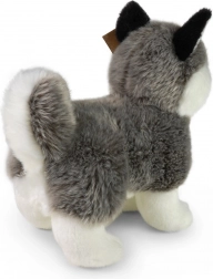 Acest husky de pluș adorabil, cu înălțimea de 23 cm, încântă prin aspectul fidel și materialul extra catifelat. Este cusut manual, realizat din pluș de înaltă calitate și umplut cu umplutură prietenoasă cu mediul din sticle PET reciclate. Un cadou grozav pentru copii și iubitorii de animale, sigur încă de la naștere.