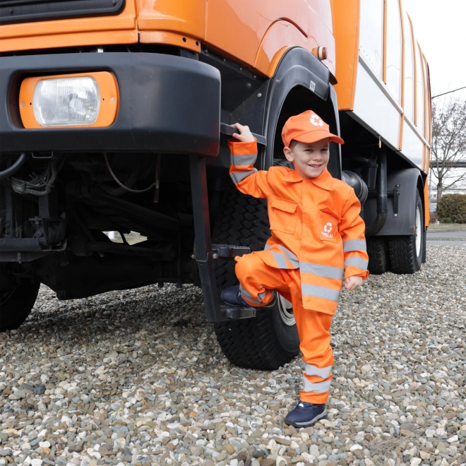 Transformă micul pasionat de utilaje într-un erou al străzilor: costum de gunoier pentru copii cu inscripție în limba cehă POPELÁŘ. Setul conține șapcă, bluză cu benzi reflectorizante și pantaloni în mărimea 128–140 cm (8–10 ani). Ambalajul eco practic economisește spațiu și protejează natura.