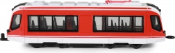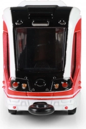Tramvai metalic realist în culoare roșie, cu lungimea de 20 cm, care îi va încânta pe micii și marii pasionați de transportul urban. Oferă mecanism pull-back pentru o deplasare dinamică, uși care se deschid acționate printr-o pârghie și construcție metalică durabilă pentru o utilizare îndelungată. Un cadou grozav pentru copii și colecționari.
