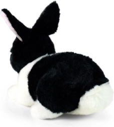 Iepurașul alb‑negru pare viu și invită la alint datorită materialului extra fin.