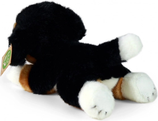 Adorabilul câine ciobănesc bernez de pluș, în poziție culcată, cu dimensiunea de 20 cm, va încânta atât copiii, cât și colecționarii. Este cusut manual din pluș fin de înaltă calitate și are un aspect realist. Datorită umpluturii ECO‑FRIENDLY din sticle PET reciclate, este prietenos cu natura și totodată sigur chiar și pentru cei mai mici.
