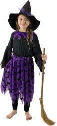 - Conținutul pachetului: rochie cu motiv de lilieci, pălărie de vrăjitoare cu fundă