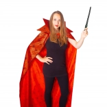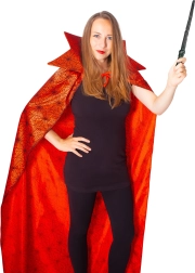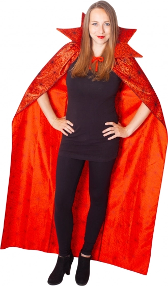 Transformă-te în câteva clipe într-un personaj misterios – pelerina roșie cu model de pânză de păianjen și guler înalt este alegerea perfectă pentru Halloween, petreceri tematice, reprezentații de teatru și baluri mascate. Efectul lucios al materialului și culoarea intensă atrag atenția și îți scot în evidență costumul.