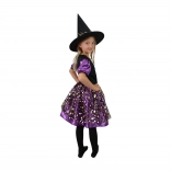 Costumul include o pălărie de vrăjitoare perfect asortată, pentru a completa impecabil întregul outfit.