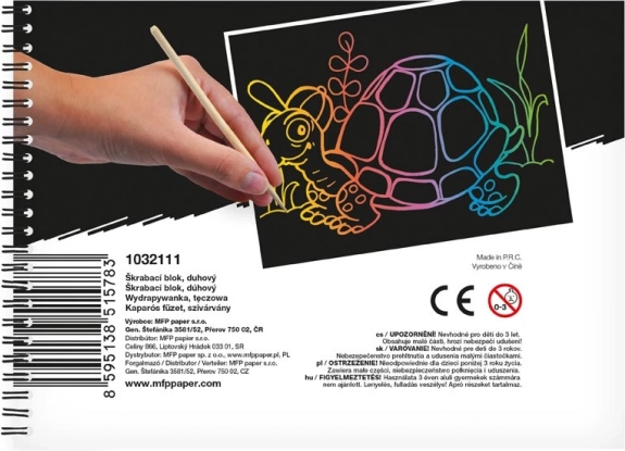 Acest Tablou de zgâriere bloc de înaltă calitate este excelent pentru dezvoltarea motricității fine și a fanteziei. Cu ajutorul său poți: