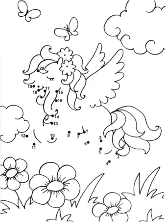 O ilustrație mai avansată, cu aripi și coamă bogată, ajută la antrenarea concentrării și a motricității fine.