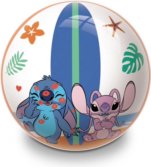 Bucurați-vă de multă mișcare și distracție cu mingea decorată cu grafica veselă STITCH în stil de vară, de plajă. Datorită diametrului de 22 cm, se potrivește perfect în mâinile copiilor și este potrivită pentru grădină, teren de joacă sau cameră.