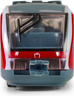 Descoperiți trenul regional stilat, inspirat de garniturile Železničná spoločnosť Slovensko. Datorită lungimii compacte de 17 cm, se potrivește perfect în camera copiilor sau într-o colecție de modele. Execuția realistă în roșu și gri atrage atenția de la prima vedere.