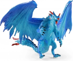 Dragon detaliat albastru, cu aripi mari desfășurate și accente roșii pe față și coadă.