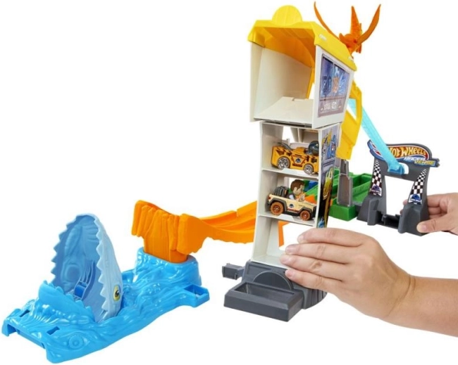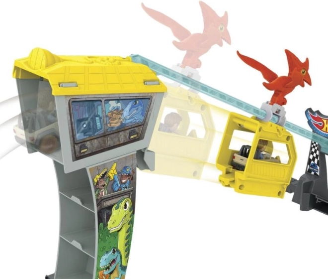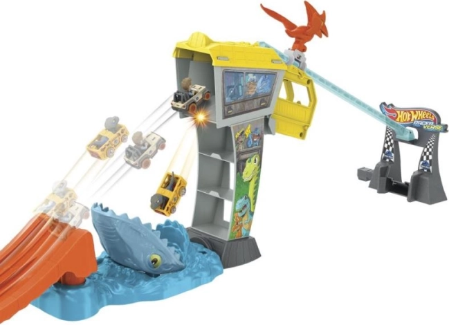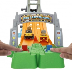 Hot Wheels Jurasic World pistă de curse vă transportă într-un mediu plin de viteză și emoție. Acest set include: