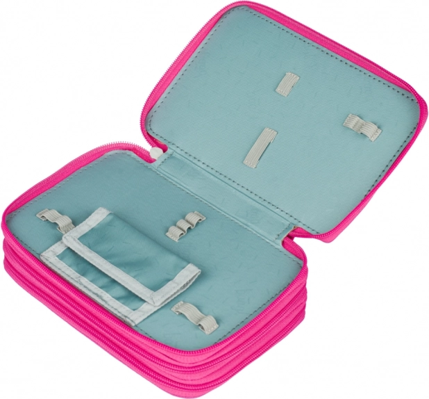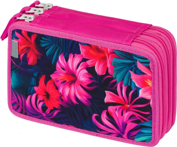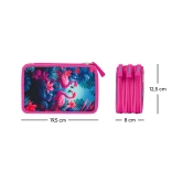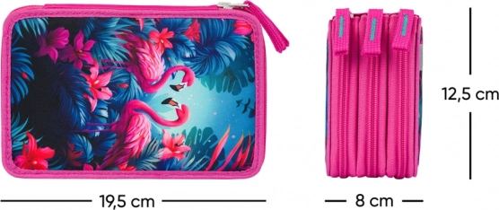 Acest penar şcolar cu trei etaje cu motiv tropical de flamingo şi frunze colorate oferă nu doar stil, dar mai ales funcţionalitate pentru organizarea tuturor uneltelor de scris. Fiecare compartiment utilizează fermoare de marcă YKK fiabile şi cotor întărit care facilitează manipularea la închidere.