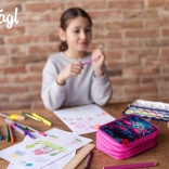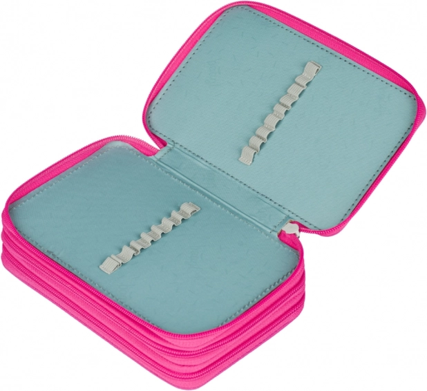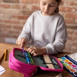 Penarul este echipat cu elasticuri care pot ţine creioane colorate şi markere mai groase, păstrând toate uneltele de scris în siguranţă în locul lor.