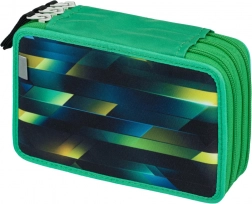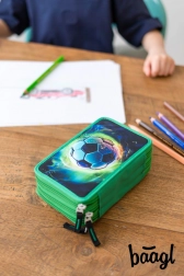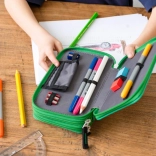 Penar cu trei niveluri cu design de minge de fotbal oferă spațiu suplimentar pentru toate necesitățile de scris, inclusiv creioane colorate și markere groase, datorită benzilor elastice adaptate. Este echipat cu fermoare de calitate și are un spate întărit pentru o manipulare ușoară.