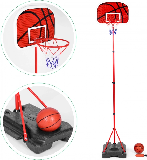 Setul include coș, minge de baschet și pompă, oferind tot ce este necesar pentru a începe jocul imediat.