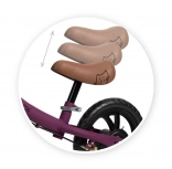 • Ghidonul cu mânere din cauciuc asigură confort și previne alunecarea accidentală a mâinilor, care ar putea descuraja copilul în încercările de a stăpâni mersul pe bicicletă.