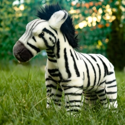 Această zebră din pluș, în picioare, va încânta orice copil și iubitor de animale. Datorită execuției manuale și aspectului realist, detaliat, va deveni un partener preferat de îmbrățișat și o decorațiune pentru camera copilului. Materialul fin, plăcut la atingere, asigură confort și siguranță în timpul jocului.