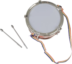 Toba pentru copii cu bețe este un accesoriu excelent pentru fiecare tânăr muzician. Cu o curea colorată pe umăr și două bețe, devine un instrument muzical ideal pentru călătorii. Cu toba, copiii pot deveni parte a unei fanfare sau pot cânta acasă.