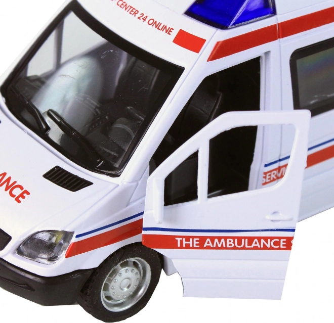 Jucărie ambulanță excepțională, care va captiva orice copil. Este fabricată din metal durabil și imită perfect un serviciu de salvare real cu detalii realiste precum efecte sonore și luminoase. Ușile laterale și din spate se deschid, sporind interactivitatea jucăriei.
