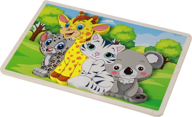 Acest puzzle din lemn cu animăluțe este primul puzzle ideal pentru copii. Piesele din lemn, solide, se țin ușor în mână și îi încurajează la joacă, care dezvoltă concentrarea, imaginația și coordonarea ochi–mână.