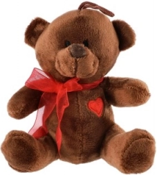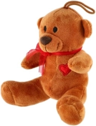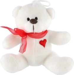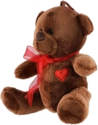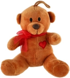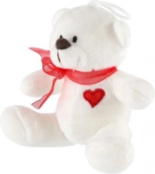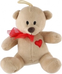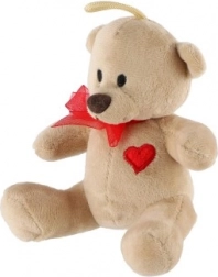 Ursulețul de pluș cu fundă și inimioară este potrivit ca dar sau decor în camera copilului.