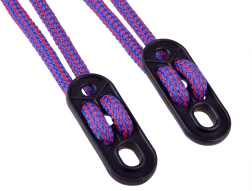 Frânghiile se termină cu agățători din plastic, care permit montarea sau demontarea rapidă a leagănului de pe cârlige.